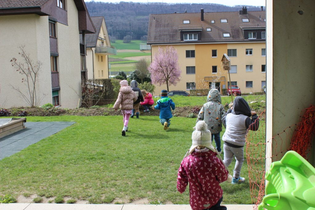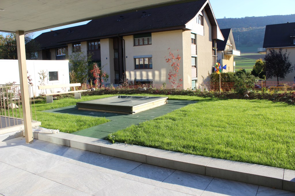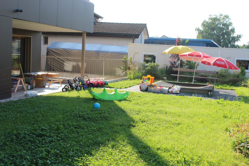 Dank einem schönen Aussenbereich können wir mit den Kindern auch bei jedem Wetter draussen an der frischen Luft sein. Die Kinder haben Platz für Spiel und Bewegung.