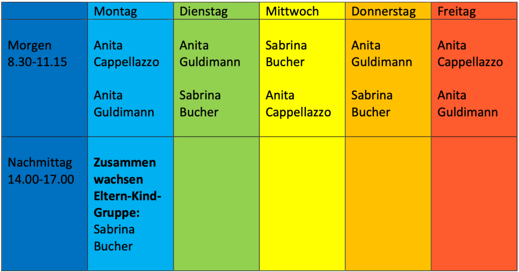 Die Spielgruppe Windredli wird geleitet von einem langjährig eingespielten Team bestehend aus: